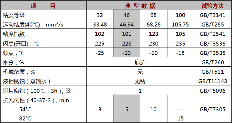 ● 優(yōu)良的抗泡性和空氣釋放性,保證液壓系統(tǒng)工作靈敏、準(zhǔn)確、平穩(wěn);
