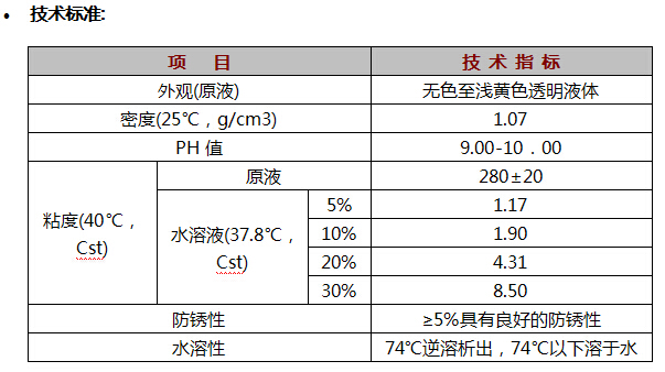 4. 對工件、淬火槽、冷卻循環系列有短期的防銹效果;